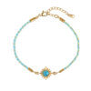 A vibrant boho bracelet featuring a handwoven braided band, a radiant 18K gold plated sun charm, and a natural healing stone center. Lightweight, meaningful, and perfect for everyday styling and gifting.