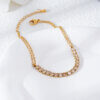A refined gold tennis bracelet featuring champagne cubic zirconia stones and a modern double-chain design. Lightweight, durable, and perfect for everyday elegance and special occasions.
