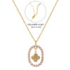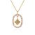 A refined 18K gold plated stainless steel necklace featuring a sparkling oval pendant with pink cubic zirconia and an elegant clover charm. Lightweight, feminine, and perfect for everyday elegance or gifting.