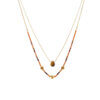Soft golden tones meet natural texture in this layered necklace designed for effortless elegance. Featuring smooth seed beads, polished charms, and a teardrop stone pendant, it embodies the charm of handcrafted beaded jewelry with the durability of stainless steel and 18K gold plating.