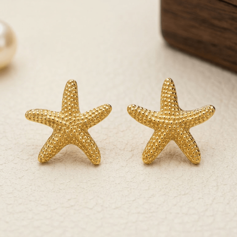 Inspired by the beauty of the sea, these starfish stud earrings feature a detailed textured design and elegant gold finish. Their lightweight construction makes them comfortable for everyday wear while adding a subtle ocean-inspired charm to your style.