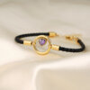 A bold yet elegant braided leather bracelet featuring a sparkling purple zircon heart charm framed in 18K gold plating. Durable, stylish, and crafted for modern everyday wear.