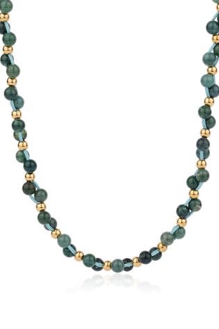 Handmade Boho Chic Green Moss Agate Beaded Cord Necklace – Natural Stone & Gold Accents