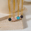 Minimalist 18K Gold Plated Chain Necklace with Natural Stone Bead Pendant – Amethyst, Black Agate, Rose Quartz, Apatite